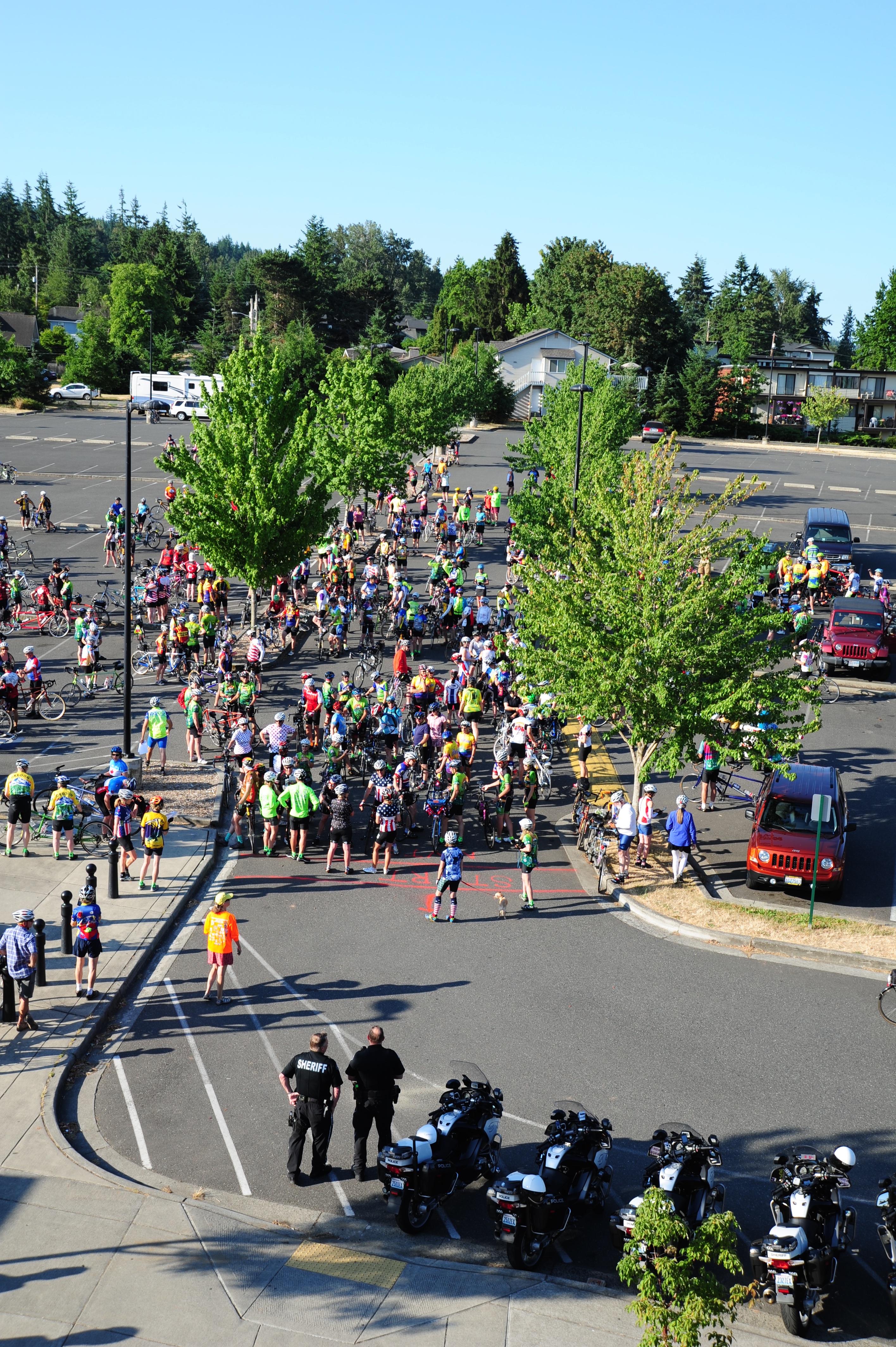 The Northwest Tandem Rally is happening in Bellingham this weekend, and 410 tandem teams are here. We wandered into the launching site for the Saturday ride and were surprised to find friends from Dallas who now live in Kansas. It was a treat to see Alan and Renee Kailer, and watching 400+ tandems take to the road was fun. From the tandem rally we went to the Saturday farmers’ market (a raucous event) and downtown Fairhaven. Bellingham is “blessed” with a lot of bike lanes, so, in the afternoon, Stephen set out for a ride. As with most bike lanes, these are full of broken glass and other trash, so he managed twenty miles of riding and replaced two flat tires.