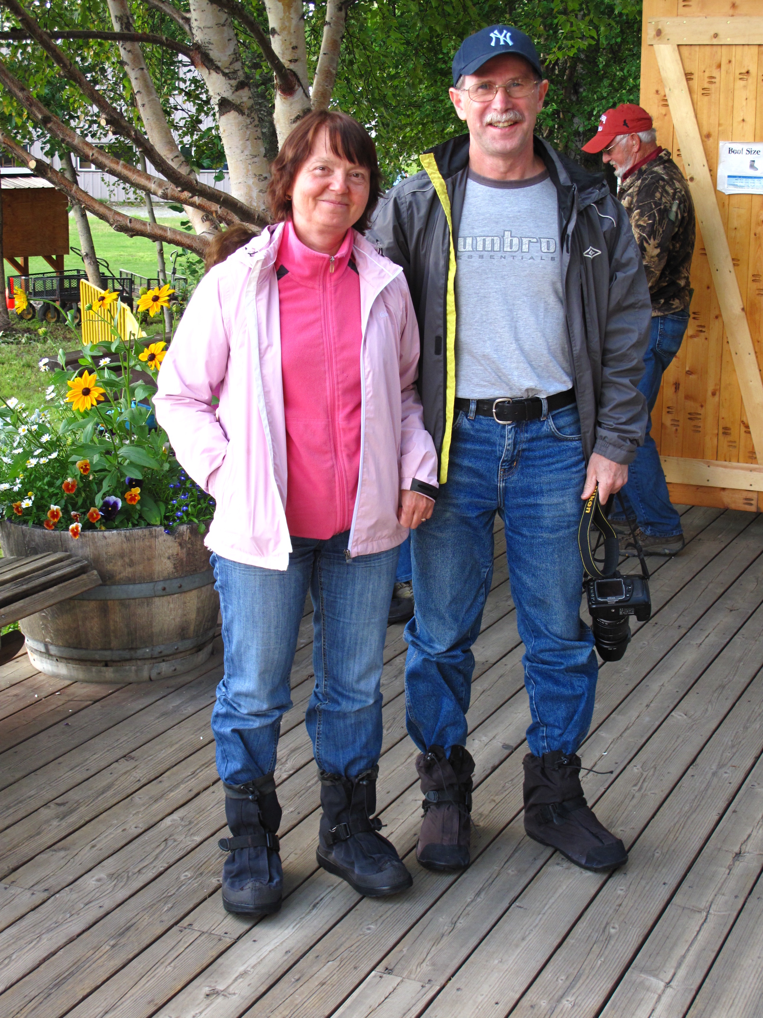 On Wednesday, Valya and Volodya took a flightseeing tour over Mt. McKinley, with a landing on the Kahiltna Glacier. As they donned their glacier climbing boots, Stephen explained that take-offs are optional, but landings are mandatory. They were not dissuaded from the trip. Although the air wasn’t completely clear, they were able to get a view of The Tall One from the air. Their pilot was fun and competent, and they arrived back safe and happy.