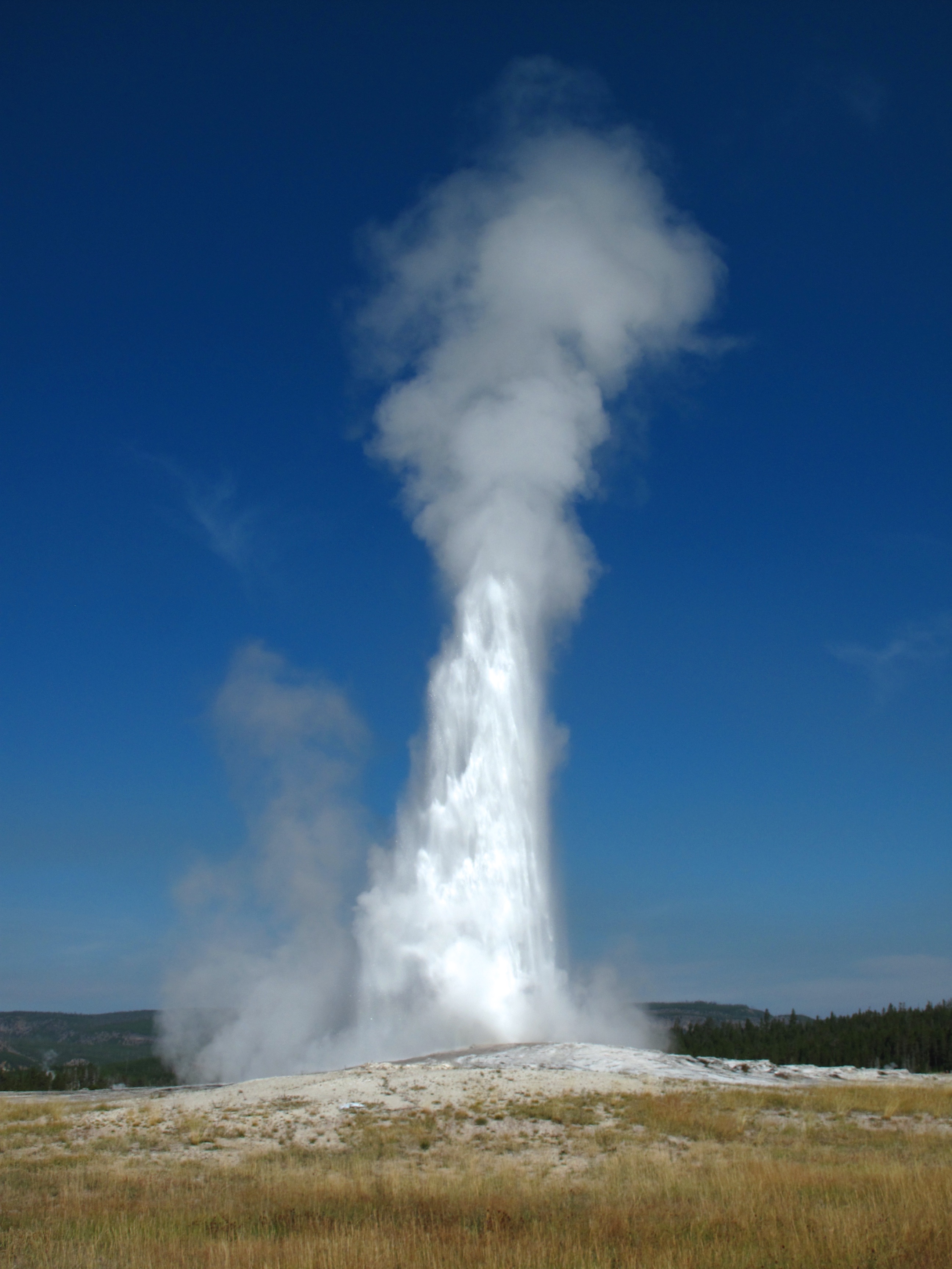Of course, our first stop (after the elk jam) was Old Faithful. It was reliable and lovely. Jean was surprised at how silent the geyser was. She expected a roar. After the geyser eruption, we visited the Old Faithful Lodge, built in 1901 and saved from several fires over the years. It is a very interesting building, constructed from local materials and lovingly maintained and defended.