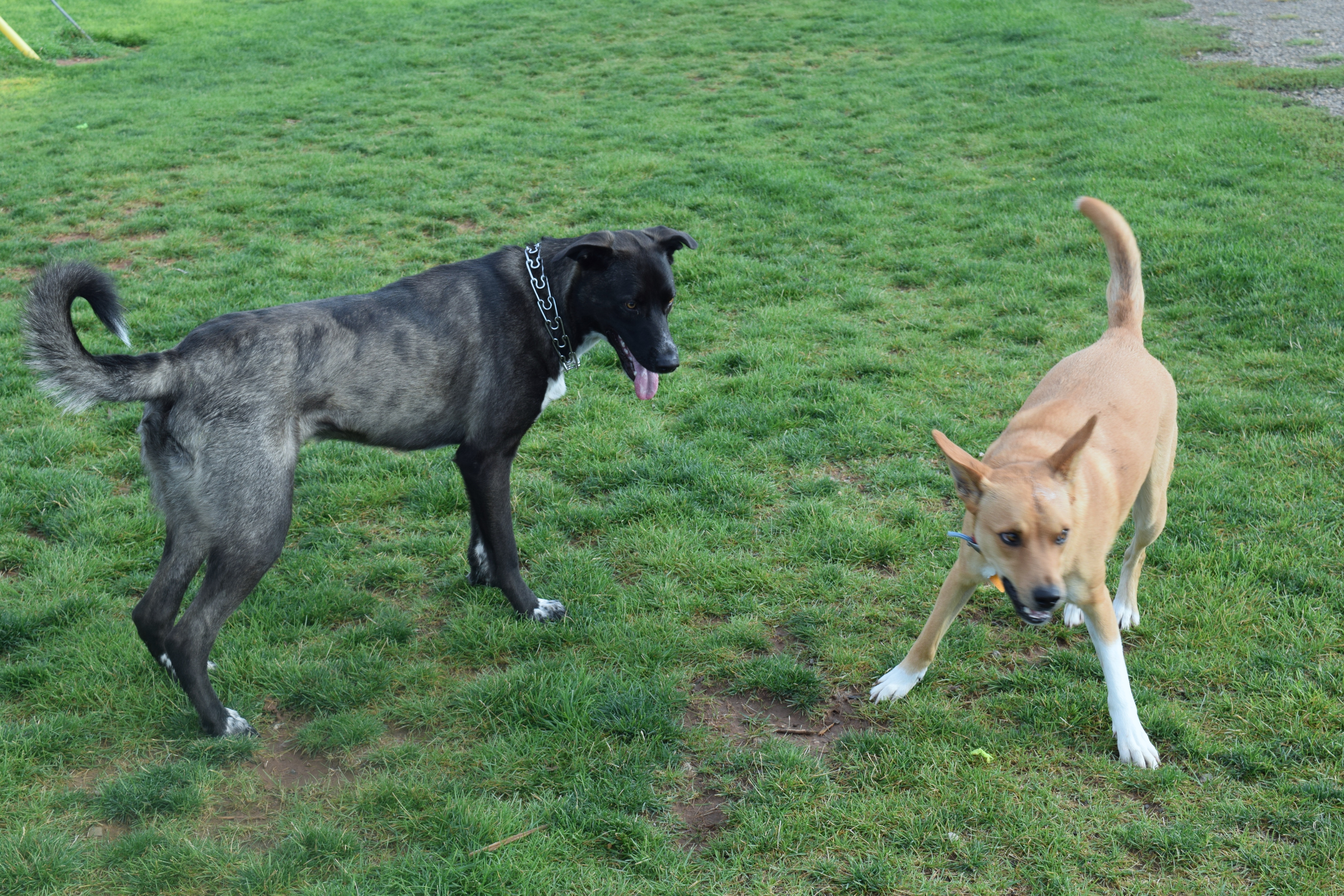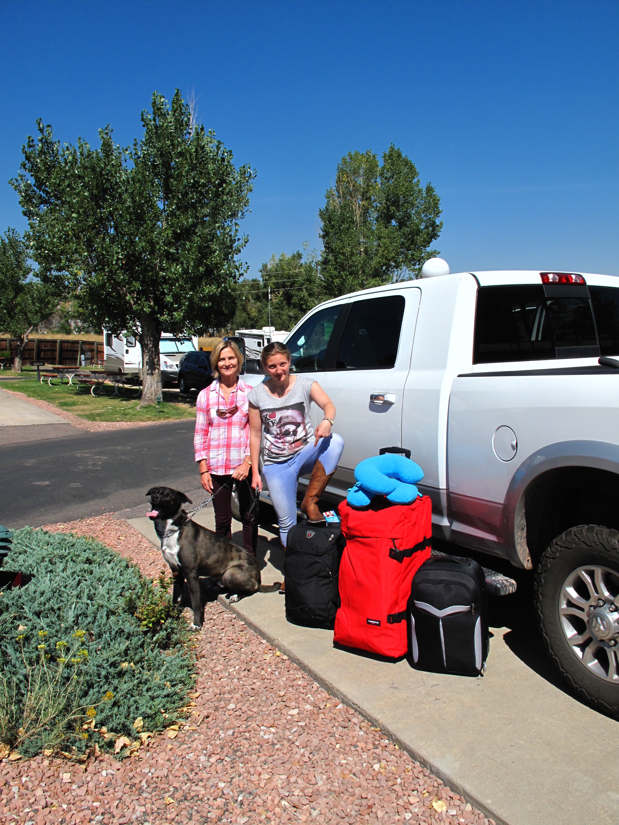 After the sky dive, we drove to Cortez, NM, to one of our favorite campgrounds. This is a KOA located next to the Cortez Animal Shelter, and there is a large dog park here. Gus had a wonderful time chasing around with other dogs. Viky tried to teach him to swim (He wouldn’t get into water where his feet didn’t touch the ground.) and criticized him for doing a “lady wee” instead of lifting his leg, but she called him Gussie Pants, and he adored her.